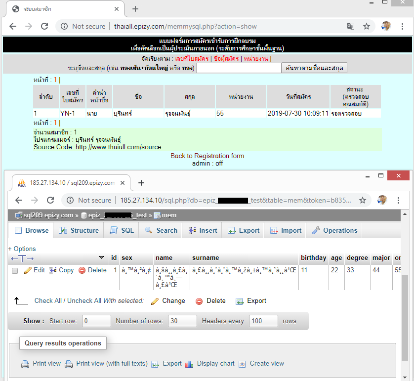 ÅӴѺ | ª×èÍá¿éÁ | ¢¹Ò´á¿éÁ (bytes) | Çѹ·Õè |